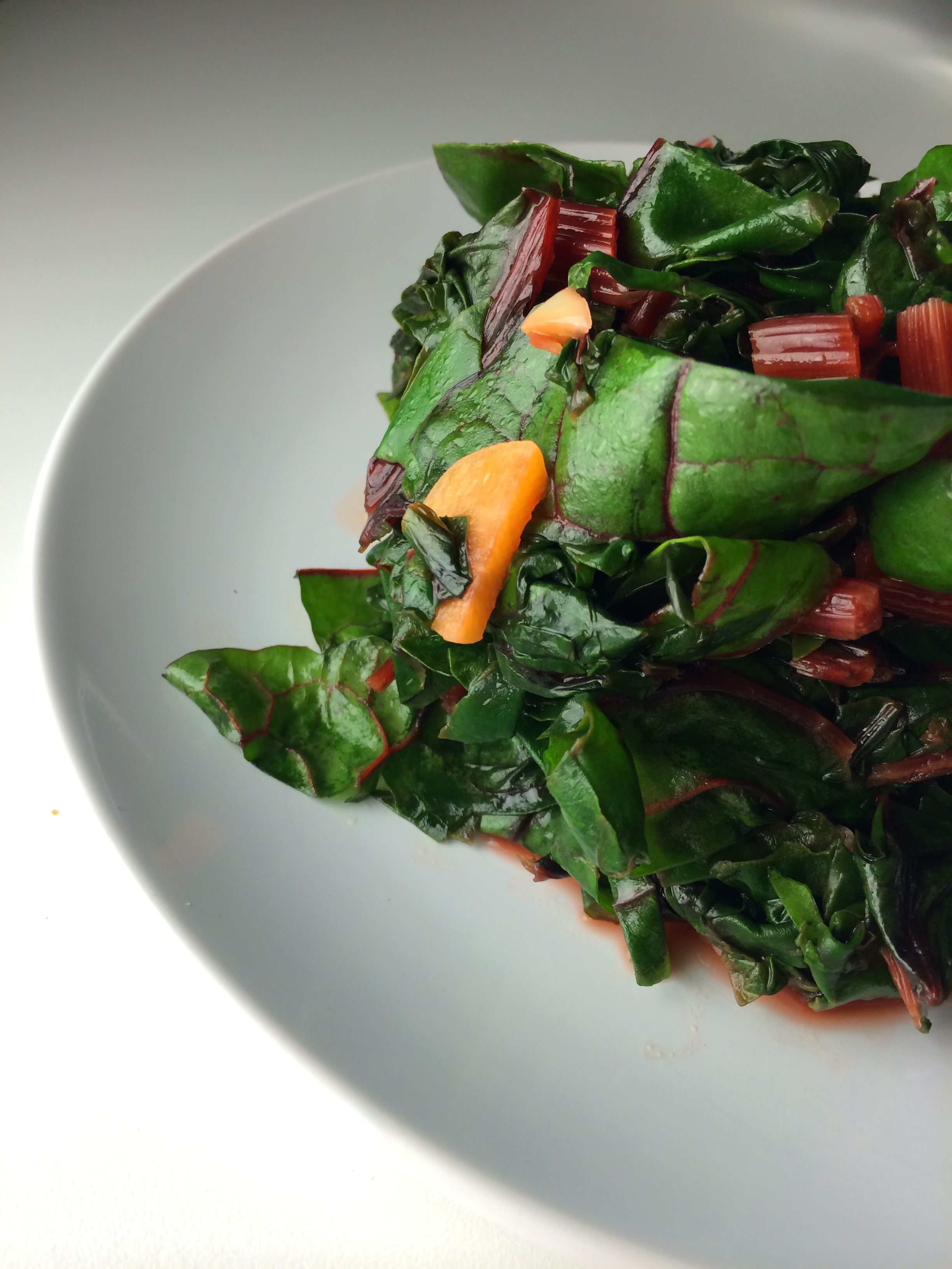 Swiss chard. What a great green vegetable. It can hold its own when tossed amongst pastas or chickpeas and bring out the flavor in a well prepared chicken or steak dish. Perhaps its best quality, in my humble opinion, is that it is an easy green vegetable to wash. Let’s face it–the reason I don’t make a green veggie every single time I cook is that I absolutely hate washing bits of dirt out of the myriad of places it has hidden itself amongst greens. Lettuces, leeks, and spinach are bad, but cilantro… Man, don’t even get me started on cilantro.